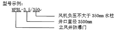 立風井防爆門按風機負壓分為不大于350mm水柱和不大于450mm水柱兩大類,按井口直徑有3個規格,共有6個型號規格,見下表: